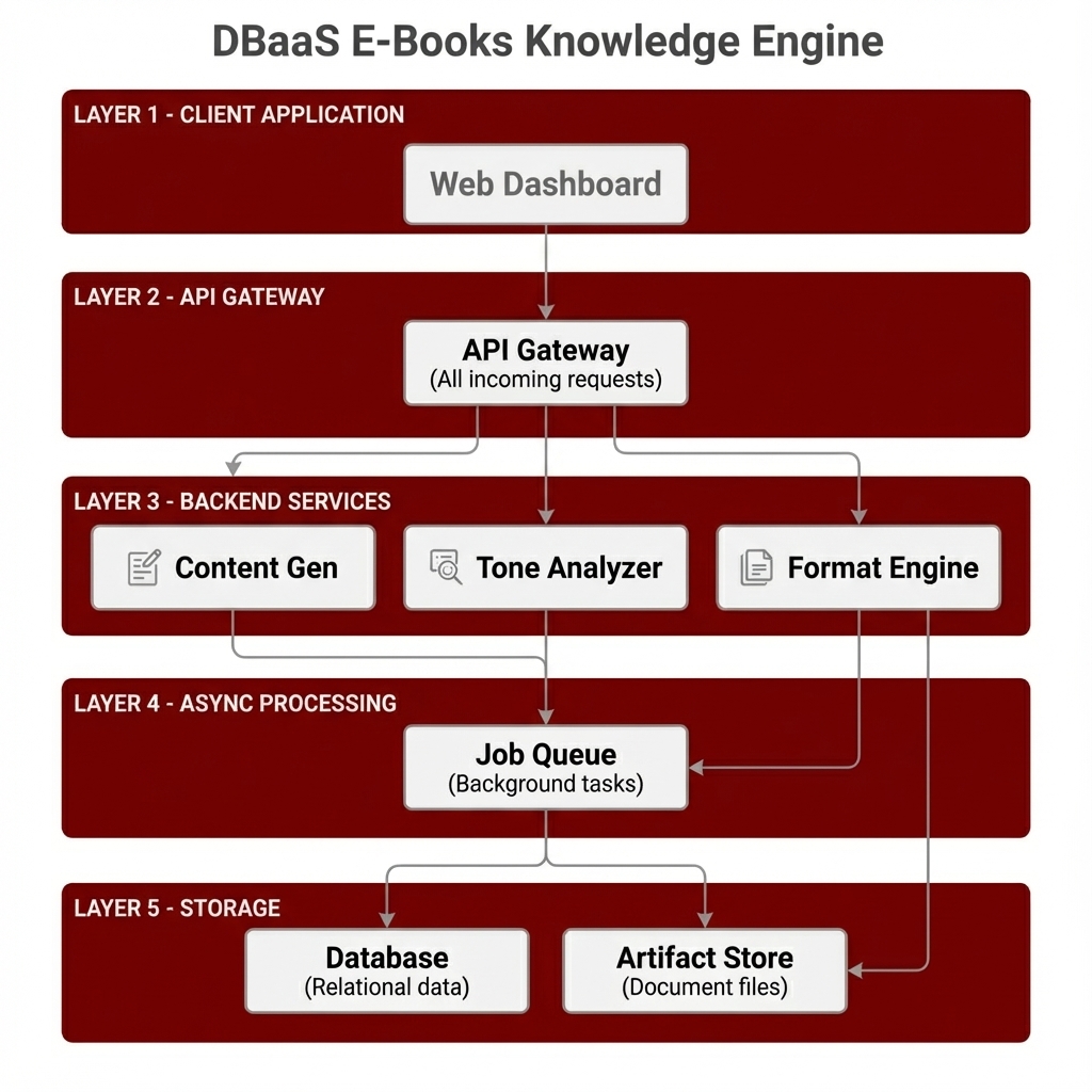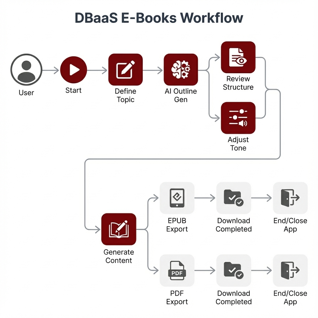 DBaaS E-Books is a knowledge distribution engine designed to bridge the gap between complex technical concepts and actionable business execution. Powered by the Tale-weaver core, it dynamically generates structured educational content—from EPUBs to PDFs—teaching founders how to discover ideas, validate markets, and execute builds. It transforms raw knowledge into distinct, consumable learning paths.