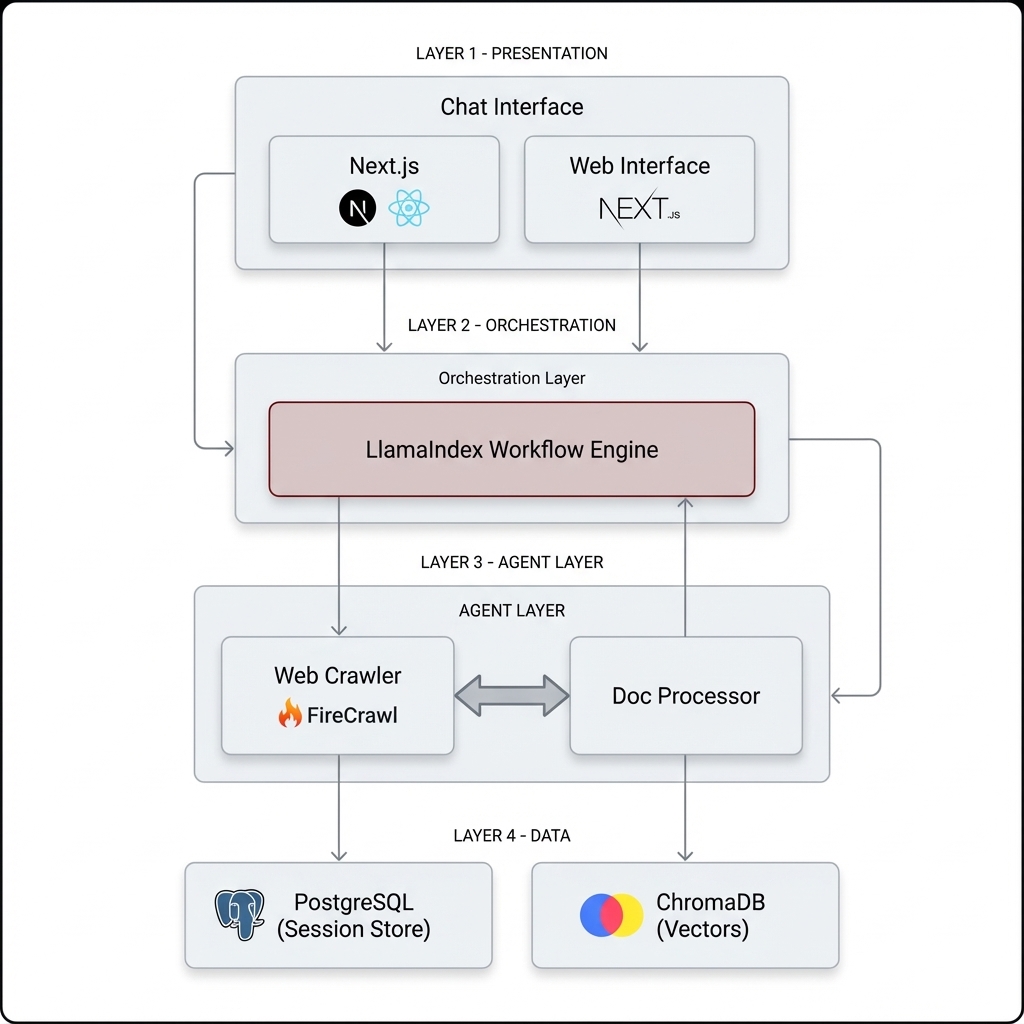 The FireCrawl Agent solves the 'staleness' problem in RAG by integrating real-time web crawling. We built a persistent system where users can upload PDFs and engage in a dialogue that automatically crawls the web for missing context. The system was recently migrated to PostgreSQL to support multi-user sessions and high-concurrency workloads.