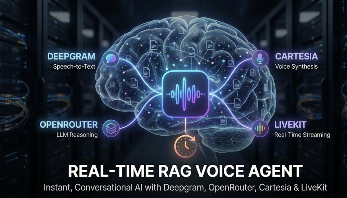 Traditional chatbots are limited by text-based interaction and delayed response cycles. Real-Time RAG Voice Agent solves this by merging speech input (Deepgram), instant LLM reasoning (OpenRouter), and natural voice synthesis (Cartesia), enabling latency-free, context-aware AI conversations. The agent supports both cloud (OpenRouter) and local (Ollama) setups for flexible deployment.